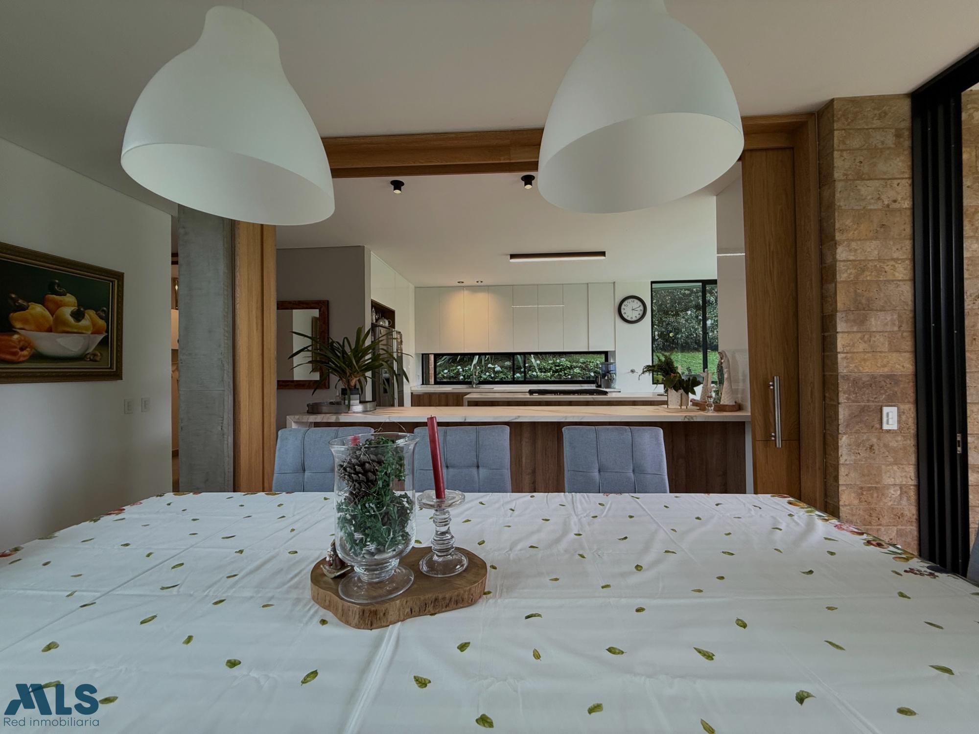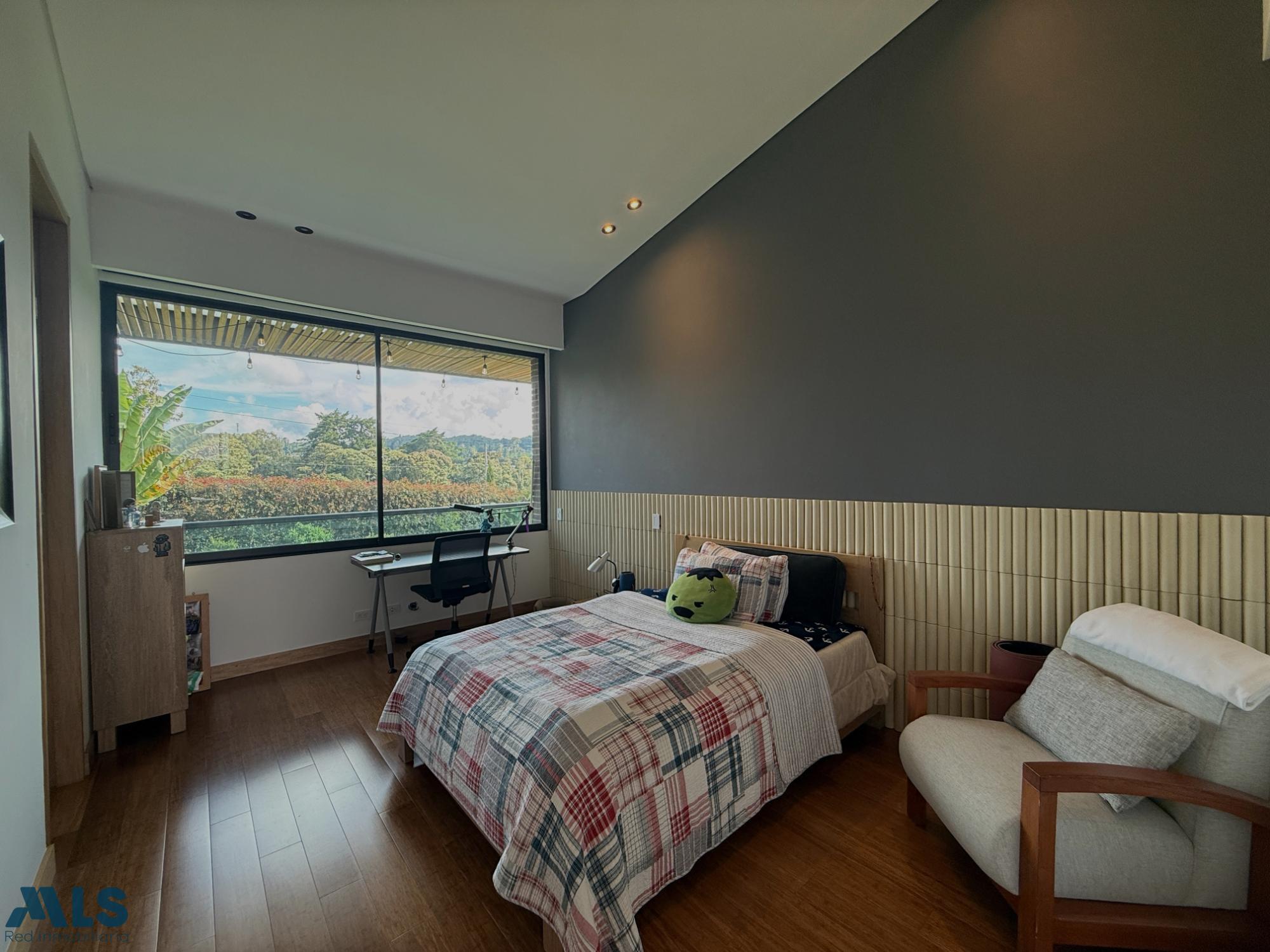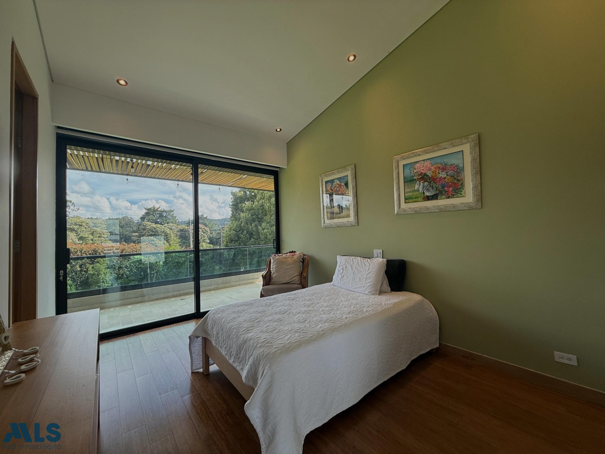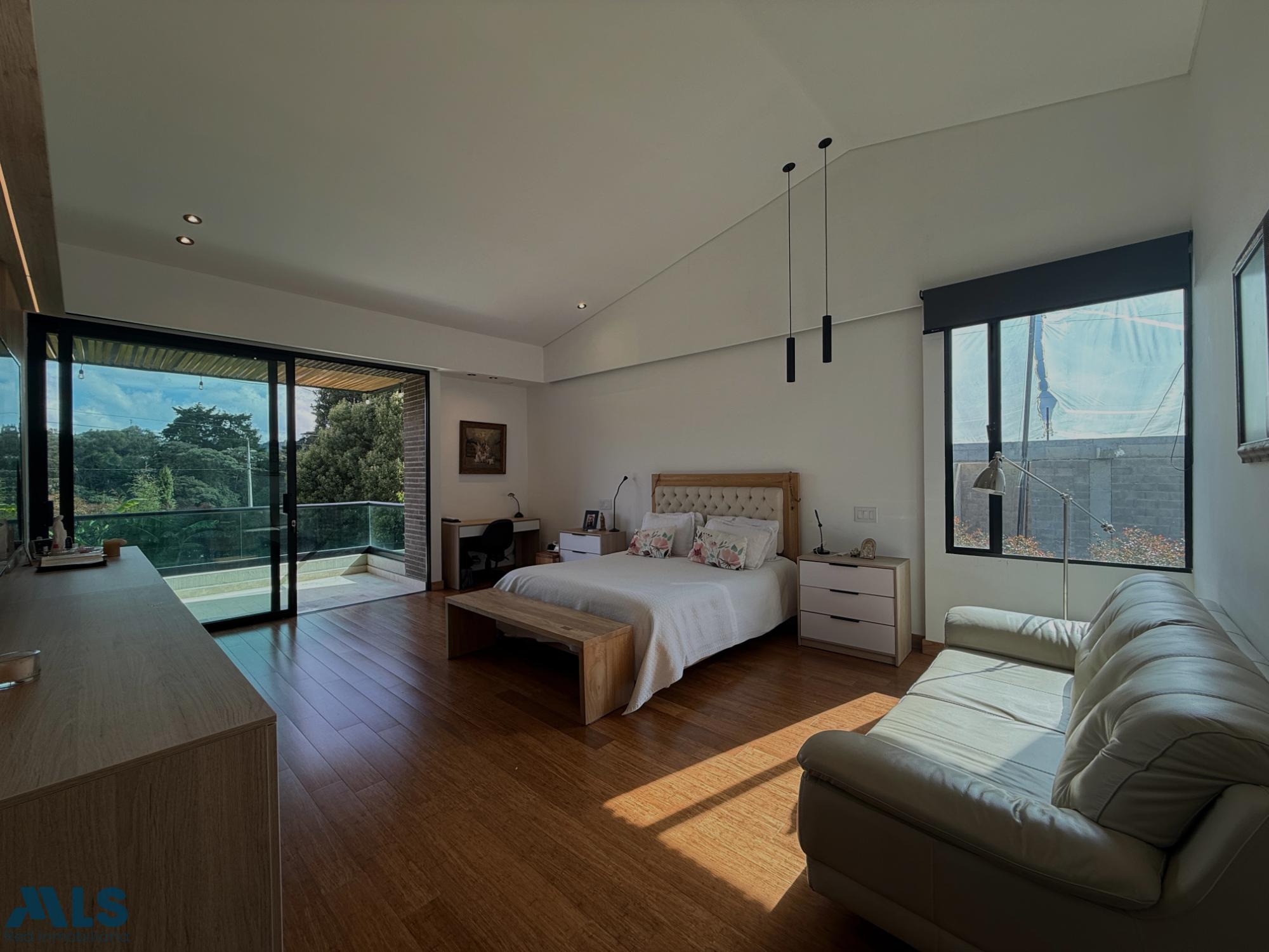Hermosa casa campestre en un sector privilegiado, en una exclusiva parcelación en la Variante las Palmas, con iluminación natural y por paneles solares Casa de 2 pisos, la zona social tiene una amplia sala comedor, cocina abierta con una hermosa vista a una zona verde plana para disfrutar en familia, un estudio grande. El segundo piso es la zona privada que consta de 4 habitaciones, cada una con baño privado y vestier, la alcoba principal tiene doble vestier, jacuzzi, sala de TV y una terraza Tiene parqueadero cubierto con capacidad para 3 carros y una rotonda de parqueo, 2 cuartos útiles, conexión para vehículo eléctrico. Una parcelación muy completa con zonas sociales: Salón social, gimnasio, sauna, turco, cancha de fútbol, dos canchas de tenis, juegos infantiles, sendero, zona de fogata