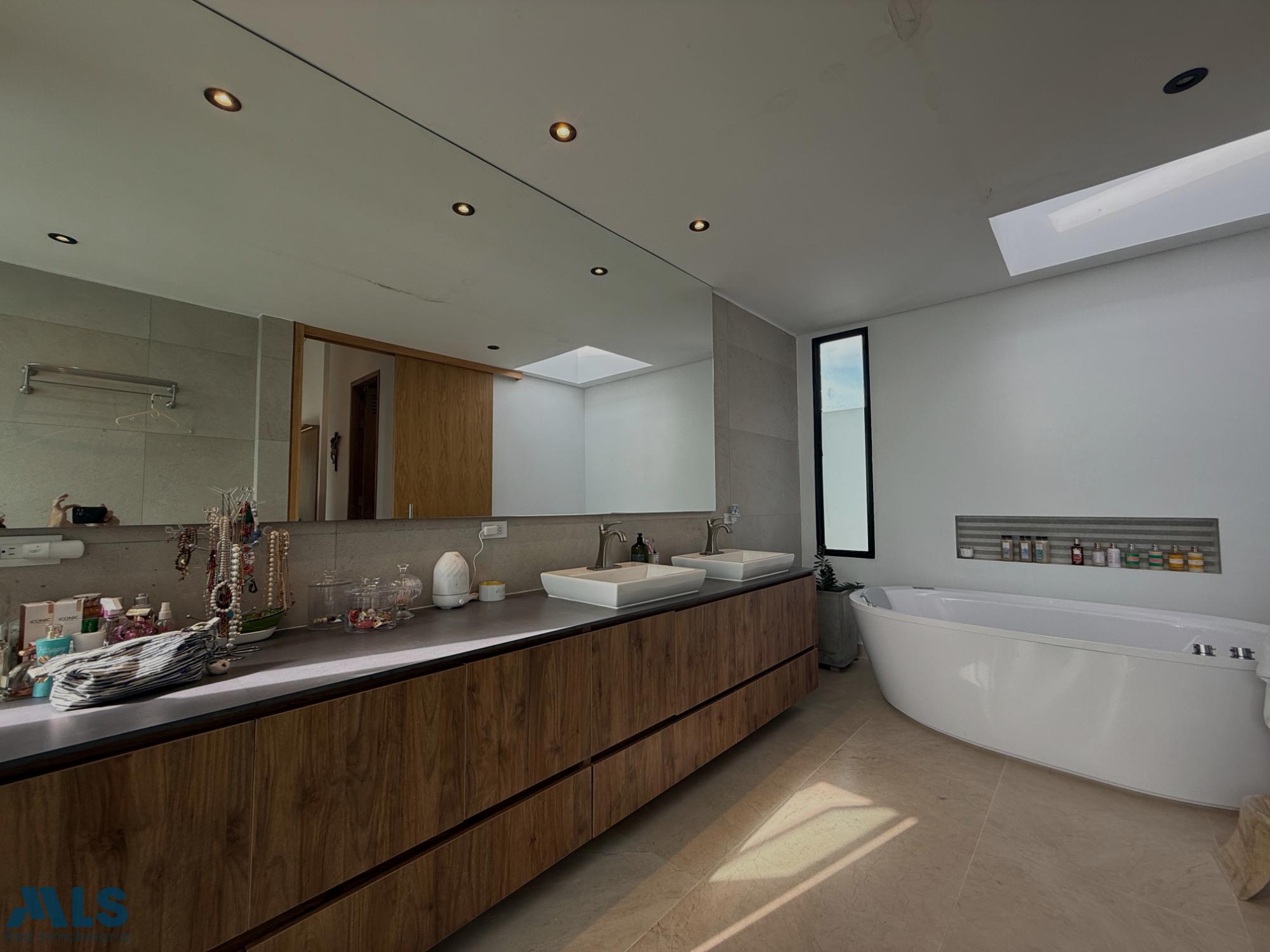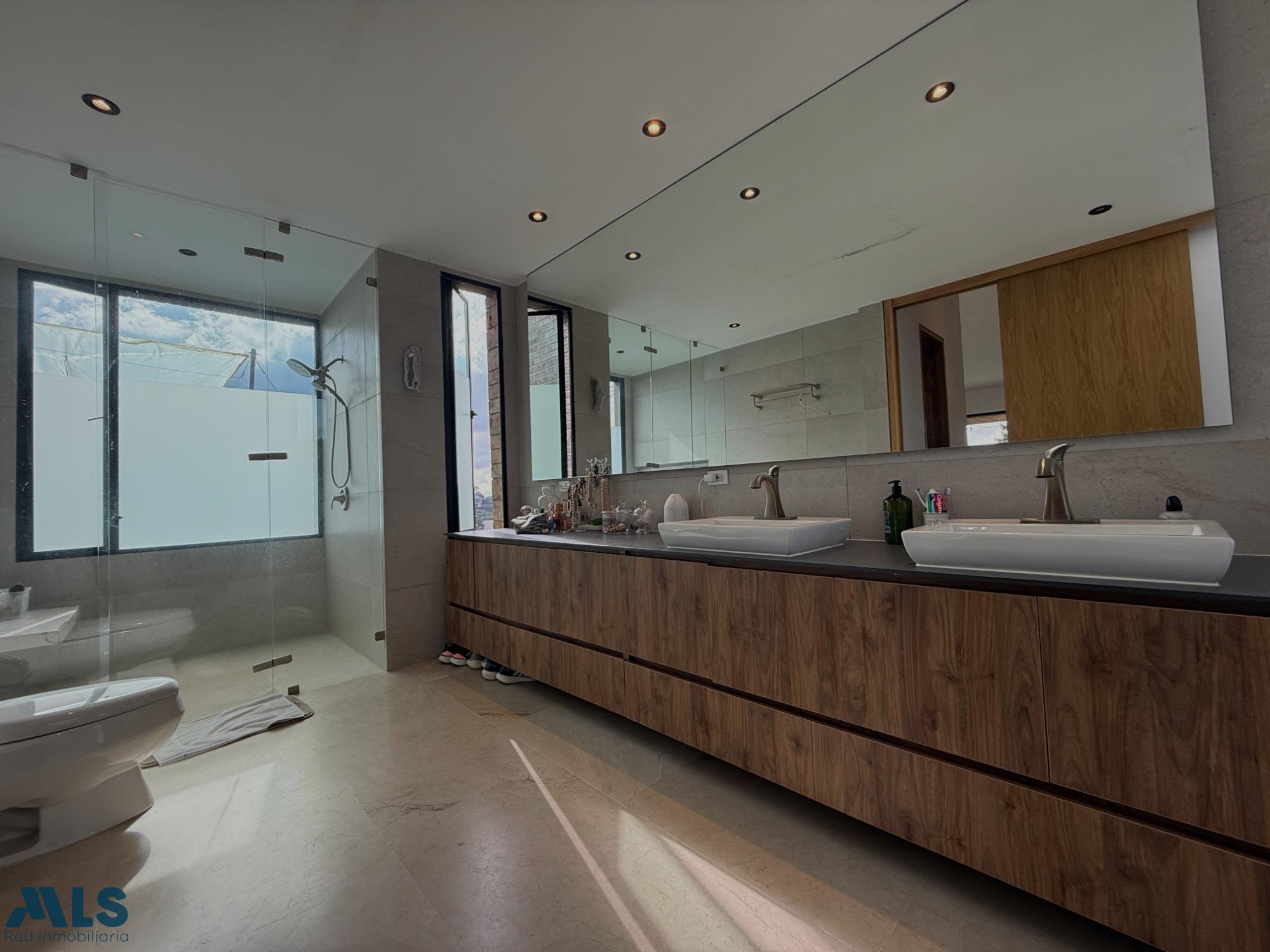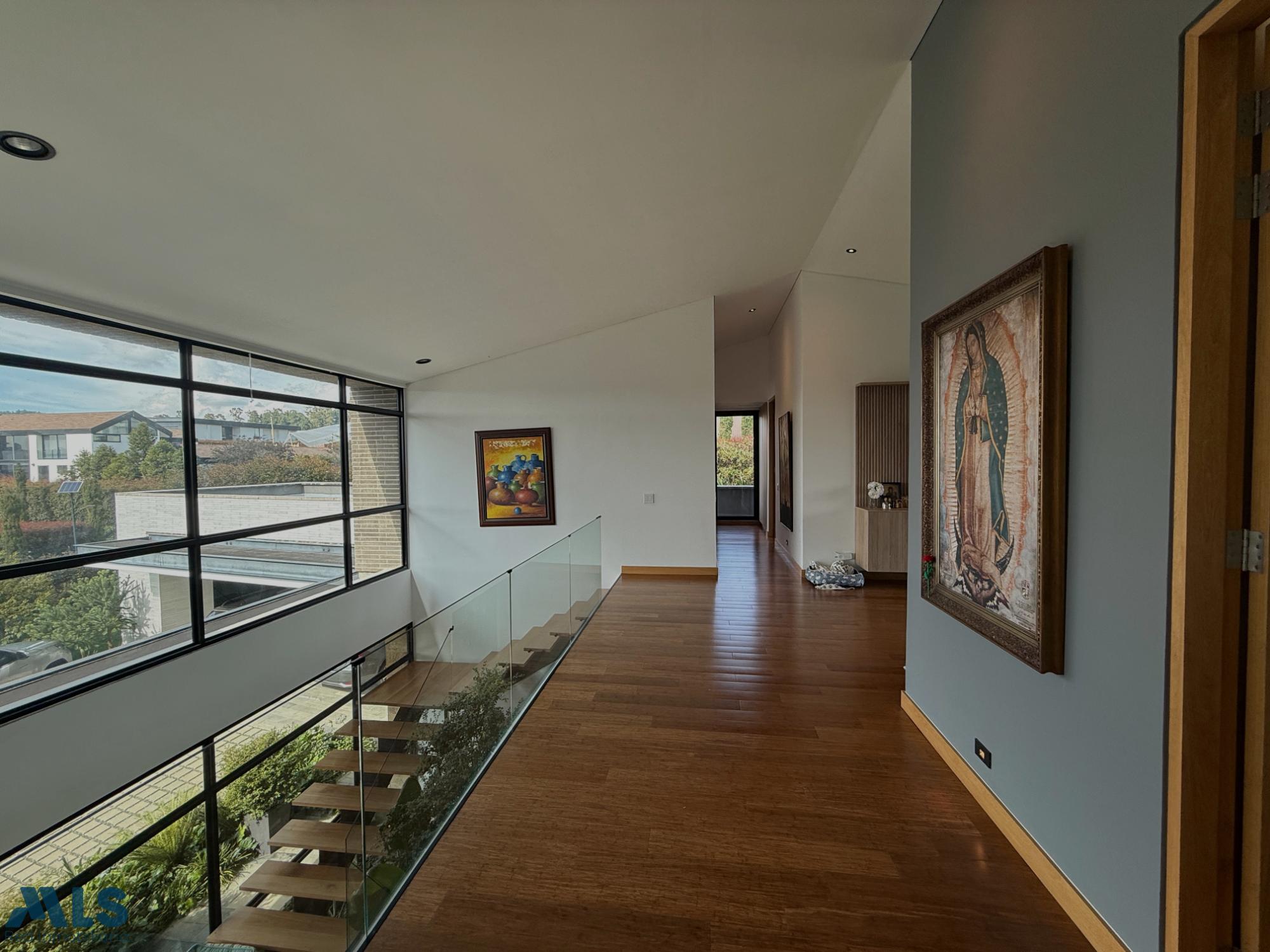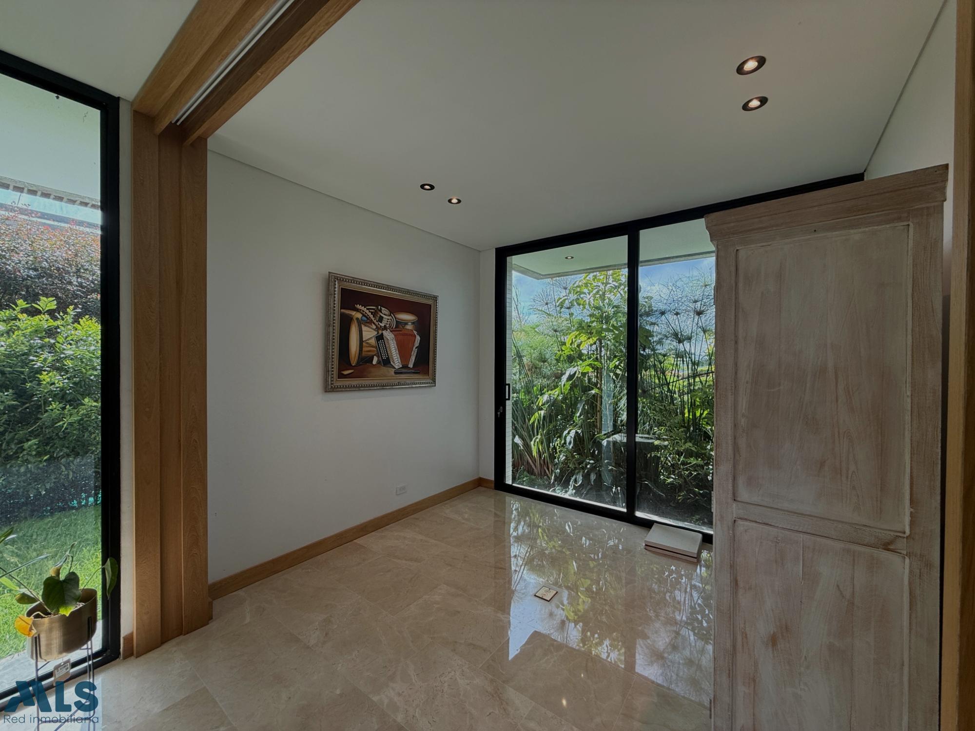 Hermosa casa campestre en un sector privilegiado, en una exclusiva parcelación en la Variante las Palmas, con iluminación natural y por paneles solares Casa de 2 pisos, la zona social tiene una amplia sala comedor, cocina abierta con una hermosa vista a una zona verde plana para disfrutar en familia, un estudio grande. El segundo piso es la zona privada que consta de 4 habitaciones, cada una con baño privado y vestier, la alcoba principal tiene doble vestier, jacuzzi, sala de TV y una terraza Tiene parqueadero cubierto con capacidad para 3 carros y una rotonda de parqueo, 2 cuartos útiles, conexión para vehículo eléctrico. Una parcelación muy completa con zonas sociales: Salón social, gimnasio, sauna, turco, cancha de fútbol, dos canchas de tenis, juegos infantiles, sendero, zona de fogata