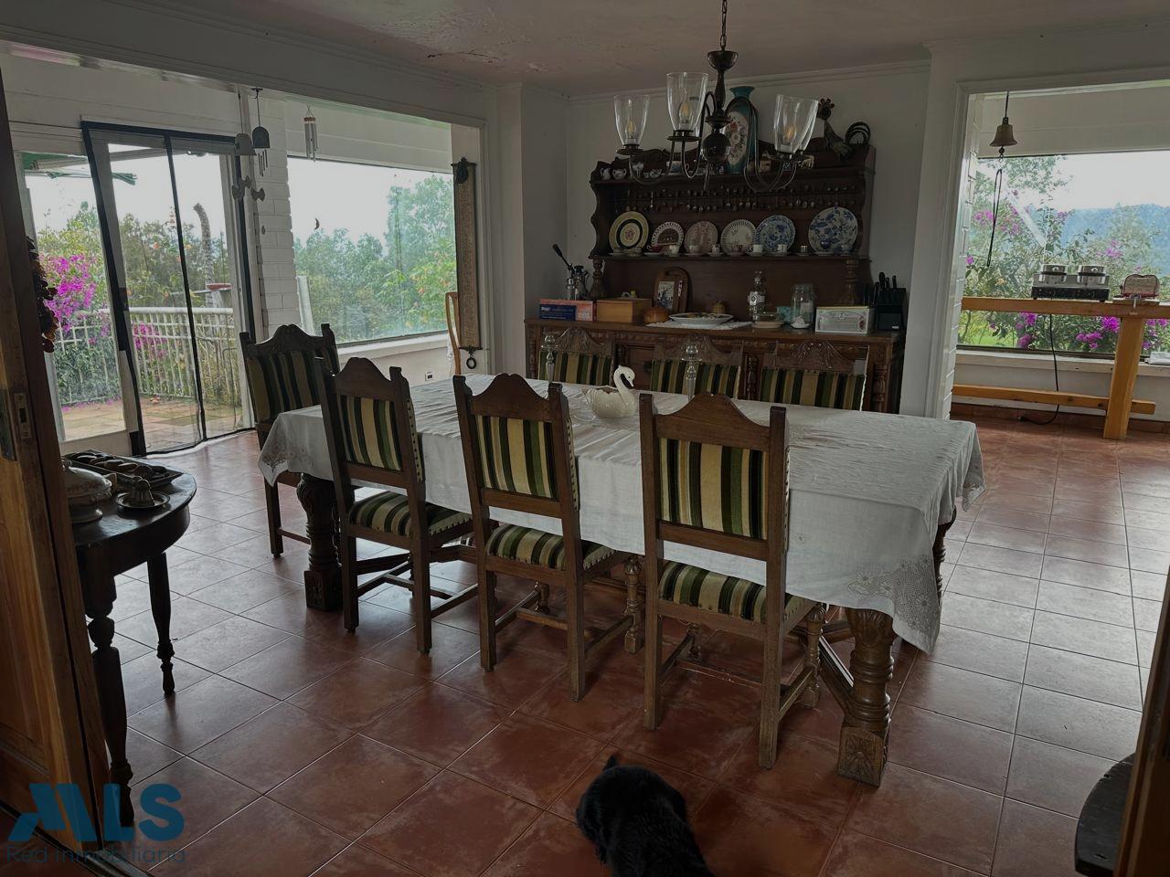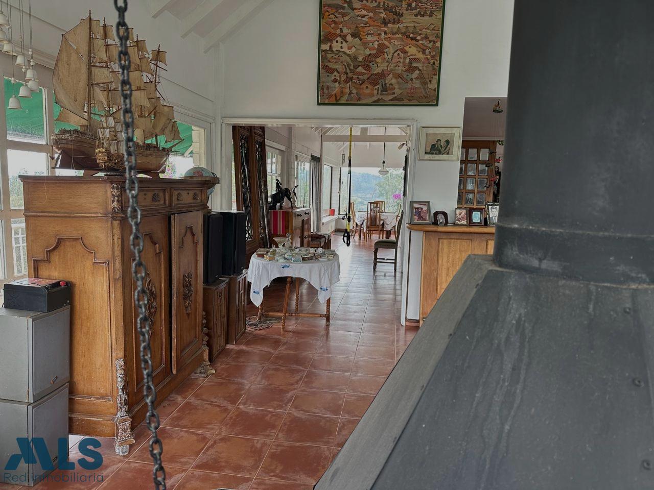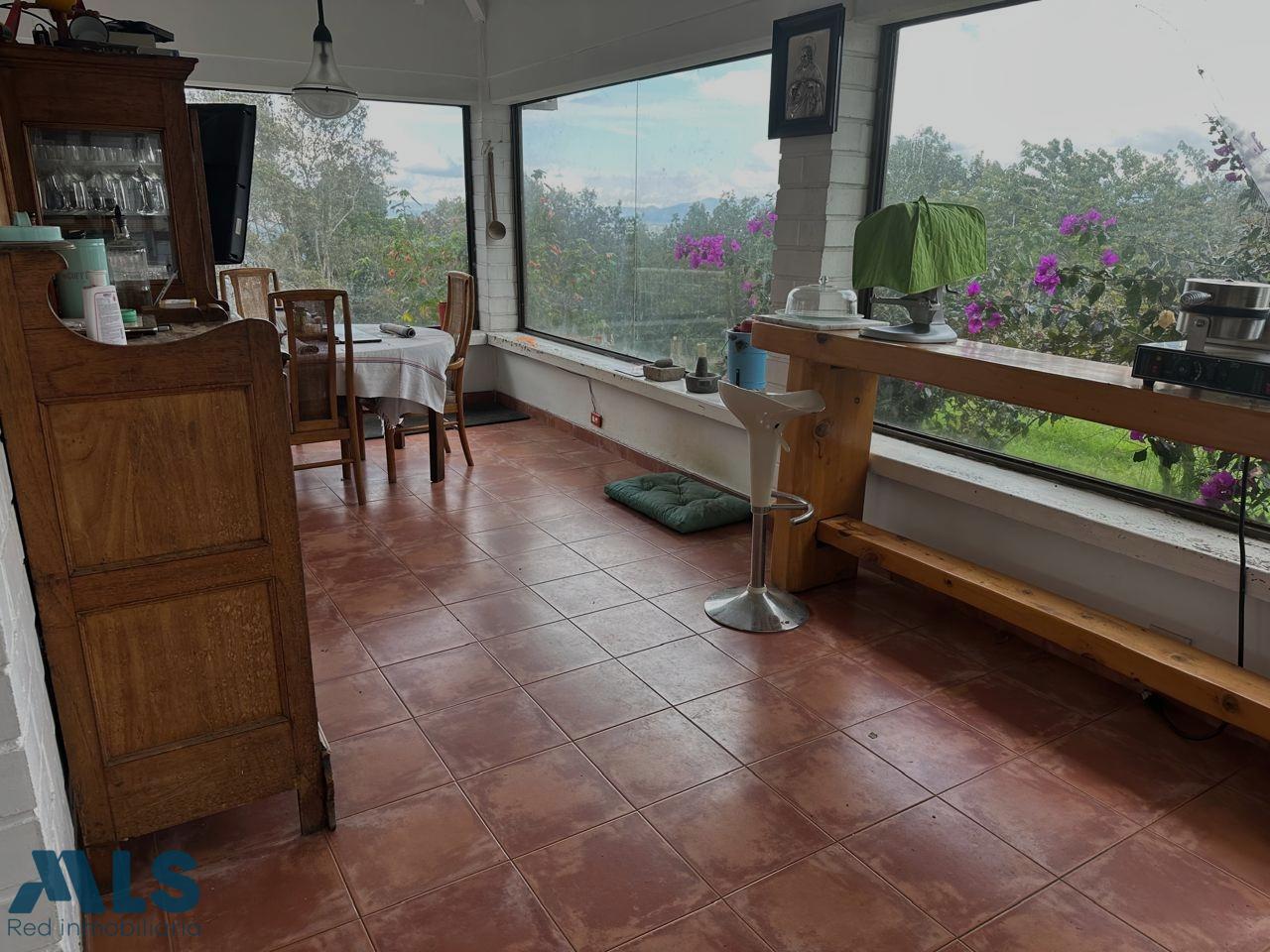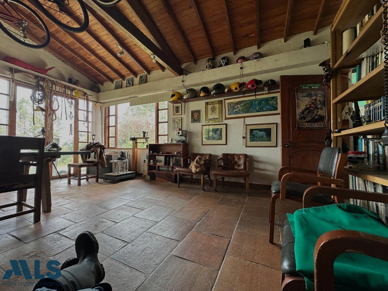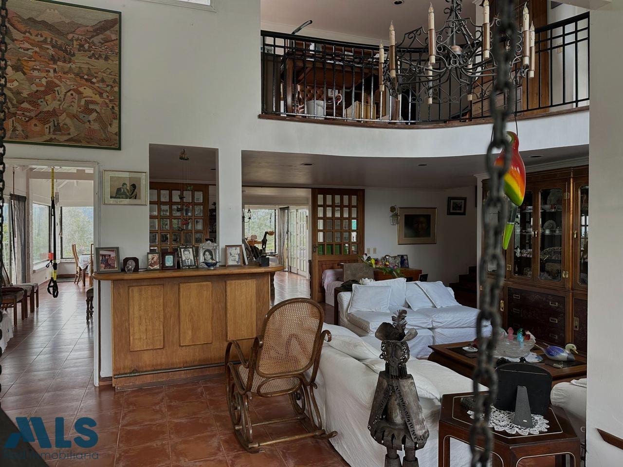 Casa Campestre en exclusiva unidad cerrada, con gran potencial de remodelación, en un lote de 10.000 mts2, Total área construida de 600 mts2 (casa ppal, apto y oficina) con 5 habitaciones, 2 de ellas con baño privado, 2 habitaciones comparten baño y 1 baño social completo, habitación de servicio, cocina semiabierta, sala, salón chimenea, comedor ppal y auxiliar, balcón tipo terraza, con apto independiente con cocineta y baño, oficina con baño.