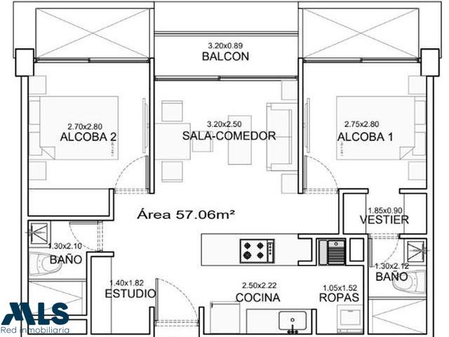 Hermoso apartamento en el Retiro, excelente ubicación, para entrega en septiembre de 2023 aproximadamente Dos alcobas, dos baños, cocina abierta, estudio, zona de ropas, unidad completa, con zona de coworking, piscina, gimnasio, turco, sauna. Estudio, Alcoba con baño, Alcoba con vestier, Cocina Abierta