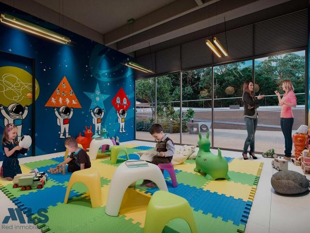 Venta de apartamento que consta de 3 torres de 30 pisos, parqueaderos privados y vigilancia 24 horas. Apartamentos amigables con el medio ambiente y espacios con tecnología independiente. Cuenta con sala de cine, salón social, gimnasio, cancha de futbol, baby gym y mucho más. El proyecto se encuentra a 2 cuadras del parque principal y a 5 minutos de Viva Envigado. Baño de Servicio, Cocineta, Alcoba con baño