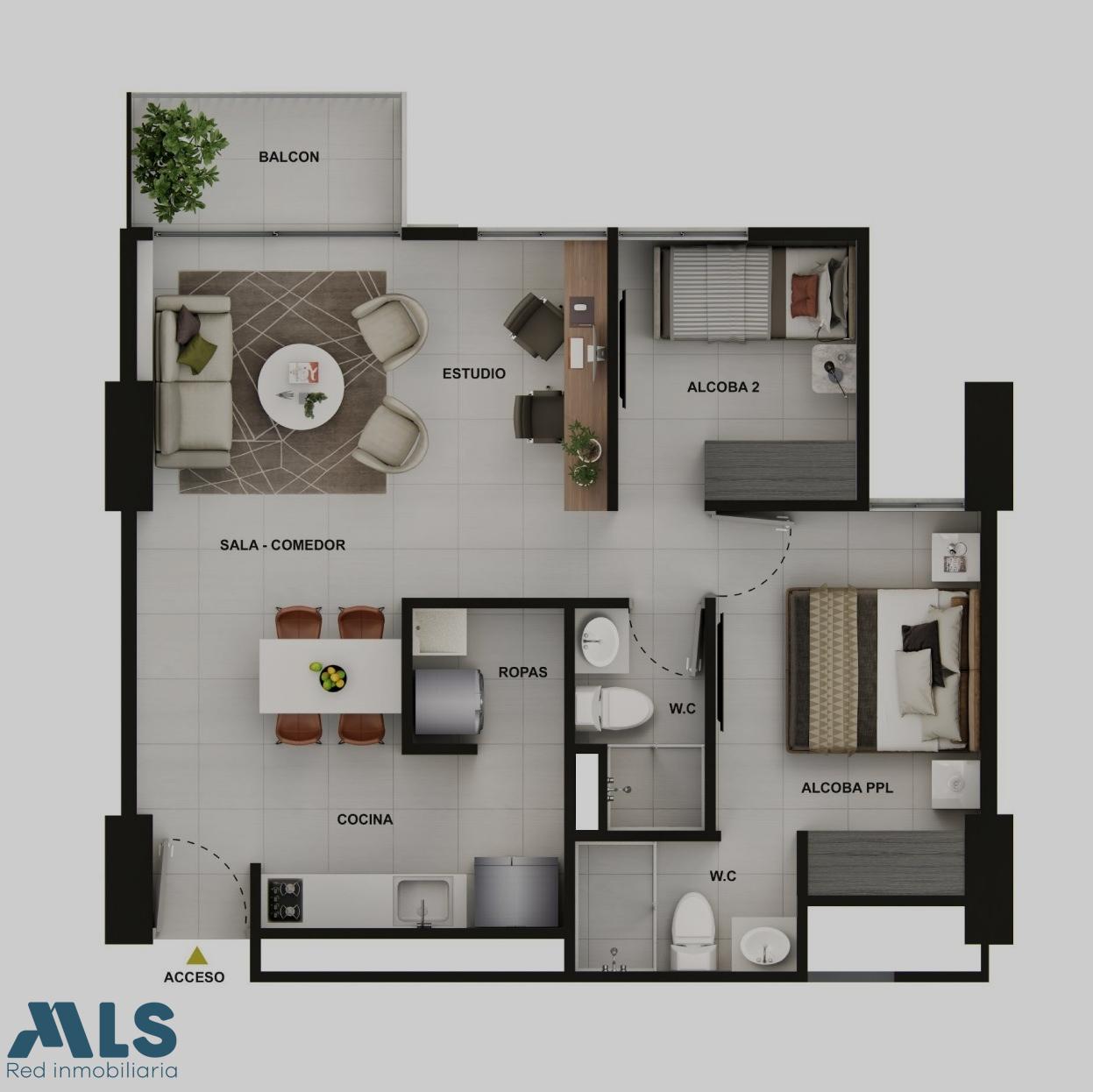 Hermoso apartamento en Cesion de Dereho, ubicado en fontibon, en la urbanizacion piedemonte, apartamento para entrega en el primer semestre del 2024, en obra gris, de 53,14M2, El apartamento cuenta con dos habitaciones, dos baños, cocina, zona social mas estudio, zon de ropas, balcon con vista hacia el bosque, y parquiadero propi, no tiene cuarto util. Alcoba con baño