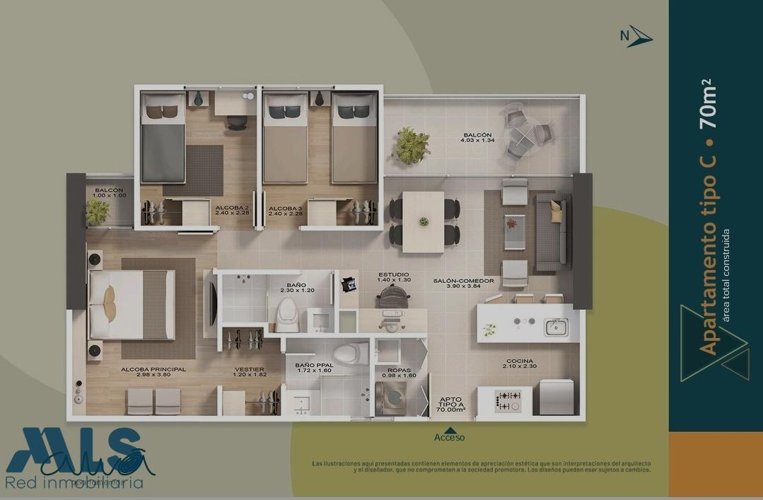 Cesión de derechos Apartamento en uno de los proyectos muy interesante en el sur del Valle de la aburra. Este apartamento cuenta con 3 habitaciones, la principal con baño y vestier. Adicional un baño social, sala comedor amplia, con balcón y estudio. Además cuenta con parqueadero sencillo y cuarto Útil. La urbanización es super completa y cuenta con una excelente ubicación Entrega proyectada para Junio 2024. Closet, Estudio, Alcoba con baño, Alcoba con vestier, Cocina Abierta